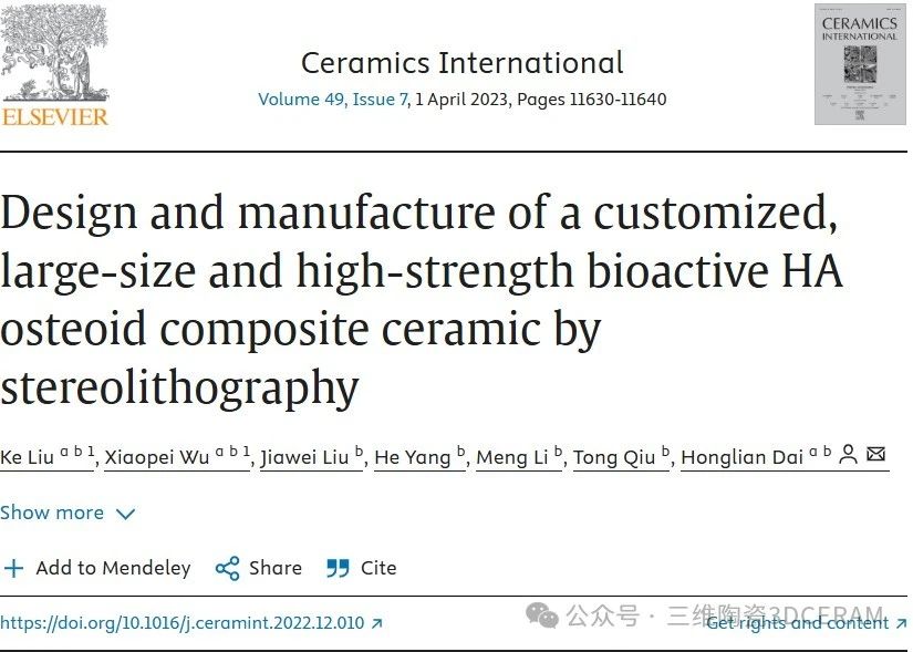 同年西安交通大學(xué)賀西京團(tuán)隊(duì)進(jìn)行了一項(xiàng)研究,相比較傳統(tǒng)的方法生產(chǎn)出的陶瓷生物支架可控性等方面較差,發(fā)現(xiàn)使用3D打印技術(shù)(3DCeram C900 3D打印機(jī))生產(chǎn)的生物支架可控性較高。該項(xiàng)研究使用的是一種常見的生物陶瓷——β- 磷酸三鈣(β-TCP),其具有與人體骨骼相似的無機(jī)成分;其研究中,采用立體光刻技術(shù)(SLA)生產(chǎn)β-TCP生物陶瓷,并以ZrO?、Al?O?、Ti6Al4V 和聚醚醚酮(PEEK)作為對(duì)照。研究結(jié)果顯示在 β-TCP 的制造過程中,未發(fā)現(xiàn)明顯的雜質(zhì)物質(zhì)和溶血毒性。β-TCP 上的細(xì)胞形態(tài)良好,其增殖能力與 Ti6Al4V 相似,高于其他材料。β-TCP 上的細(xì)胞 ALP 水平高于 PEEK。β-TCP上的礦化程度明顯更高。β-TCP 上成骨相關(guān)基因的表達(dá)與Ti6Al4V 相似,高于其他材料。結(jié)論表明通過立體光刻技術(shù)(SLA)生產(chǎn)的 β-TCP 無毒、精度高、骨整合能力優(yōu)異,是骨植入的良好選擇。(全文詳見https://doi.org/10.1515/biol-2022-0530)