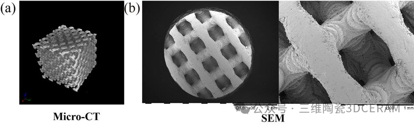 武漢三維陶瓷科技有限公司也積極參與此方面研究,2022年與武漢理工大學(xué)戴紅蓮教授一同參與了國(guó)家重點(diǎn)研發(fā)計(jì)劃相關(guān)內(nèi)容,為多材料陶瓷構(gòu)件設(shè)計(jì)制造提供科學(xué)支持,促進(jìn)高端陶瓷增材制造裝備的創(chuàng)新發(fā)展與轉(zhuǎn)型升級(jí)。戴紅蓮教授團(tuán)隊(duì)通過優(yōu)化打印工藝和結(jié)構(gòu)設(shè)計(jì),利用SLA陶瓷打印技術(shù)開發(fā)出了具有高強(qiáng)度和優(yōu)異生物學(xué)性能的大尺寸HA復(fù)合支架。報(bào)道研究了激光功率、光斑間距和掃描速率對(duì)HA漿料固化行為的影響,通過 SLA 制造了不同體積比的致密外殼 / 多孔核心結(jié)構(gòu)以滿足承重部位的高機(jī)械強(qiáng)度要求,并基于建模算法探索了不同微通道結(jié)構(gòu)單元對(duì)血管化的影響。總之,通過優(yōu)化工藝和結(jié)構(gòu)設(shè)計(jì),利用 SLA 陶瓷打印技術(shù)開發(fā)出了具有高強(qiáng)度和優(yōu)異生物學(xué)性能的HA復(fù)合支架。(全文詳見:https://doi.org/10.1016/j.ceramint.2022.12.010)